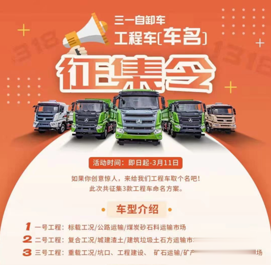 線上征名,多場景“量身定制”,三一自卸車新品3.18“三箭齊發”看點都有啥?