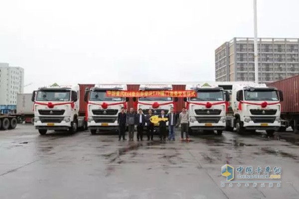 5臺(tái)中國(guó)重汽豪沃T7H6×4牽引車交付廈門港務(wù)
