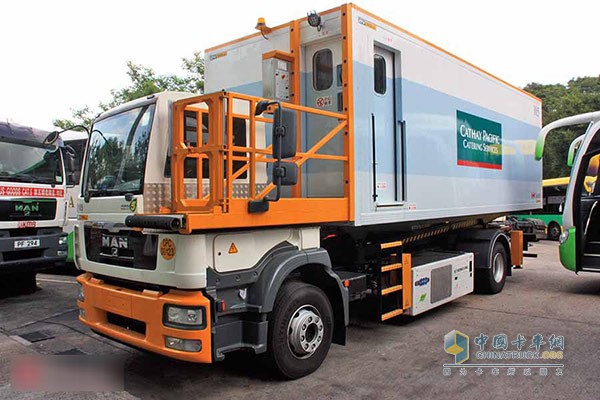 航食車是每個客運機場必備的車型,匆匆趕路的乘客很少會注意到它們。的確,航食車在作為機場地勤使用的特種車輛,在機場除了遠距離的觀察,很少有機會近距離接觸。某年夏天,在MAN香港上水服務站,有幸見到了國泰航空購買的MAN TGM15.250航食車。