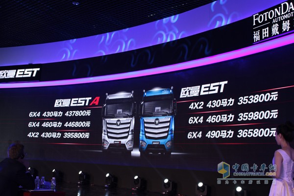 其中歐曼EST-A超級卡車首批上市的三款車型,包括6X4驅動430馬力輸出、6X4驅動460馬力輸出及4X2驅動430馬力輸出三種動力總成配置,官方指導價格分別為43.78萬、44.68萬及39.58萬元。而EST超級卡車首批上市的三款車型則包含4X2驅動430馬力輸出、6X4驅動460馬力輸出及6X4驅動490馬力輸出的三種動力總成,官方給出的指導價格為35.38萬、35.98萬及36.58萬元,實惠價格超越用戶期待。