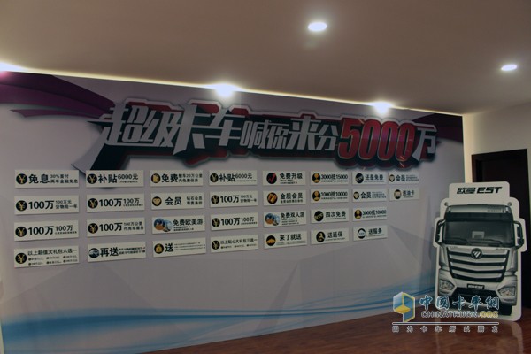 更讓重卡用戶驚喜的是,為慶祝超級卡車的上市,福田戴姆勒汽車還針對購車用戶推出了5000萬豪禮的銷售政策;涉及30%首付2年零利率購車,6000元二手車置換補貼,4年半價回收等。買10臺歐曼EST-A超級卡車,送1臺歐馬可,可謂買大還送小,助力用戶成立超級卡車運輸車隊;100萬公里內代用車服務、100萬公里內發動機保養服務、100萬公里內發動機免費保修、1年100萬元貨物險;20萬公里整車免費保養;首個100萬公里贈送1臺歐曼EST-A超級卡車等20余項極具吸引力的銷售政策,可謂開創了中國重卡新品上市鉅惠用戶的新標桿。