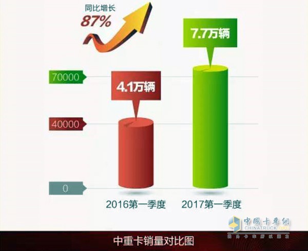 2017年,一汽解放制定了整體銷量挑戰22.7萬輛的銷售目標,其中中重卡銷售20.1萬輛,市場份額要達到20.5%。如今解放在一季度即霸氣的取得7.7萬臺的銷量,完成量遠超目標1/3,按照行業形勢預測,即使市場逐漸回歸冷靜,但解放憑借一季度的開門大紅,完成年度目標指日可待。