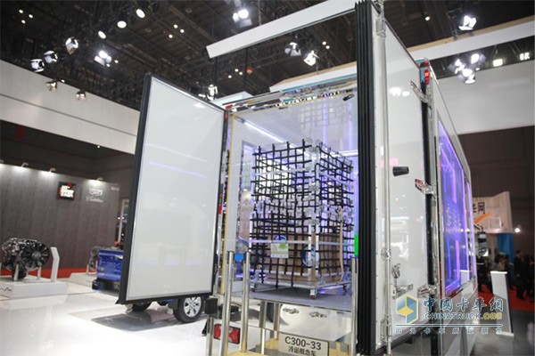 本屆車展躍進展出的兩款車型,除了炫酷的技術與造型,更關心與大家生活密切相關的日常需求。躍進EC100-33新能源車關心清新的空氣,主打無污染的新能源;躍進C300-33三溫冷鏈車關心糧食、蔬菜和藥品安全,除了擁有超越普通冷鏈車的“冷凍、冷藏、常溫”三個溫區,更加入遠程實時監控系統,是一款互聯網概念冷鏈運輸車。