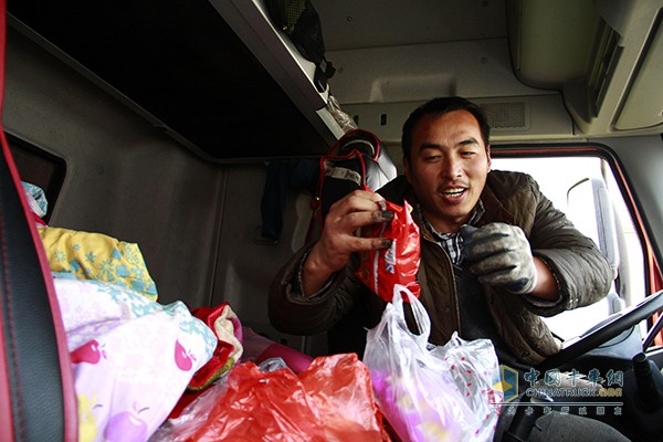 還有一次,車停在了一條鄉鎮間的小道上,車上的拉桿壞啦,無法再繼續行駛。車上載的貨物都是時鮮性的,最怕途中擔擱時間。毛師傅什么也顧不上,讓妻子看著車,自己跑遍了周邊的兩個城市,也沒買到合適的新拉桿。這可急壞了毛師傅,看著掛車上的貨,疲憊的他真是急病亂投醫,終有好友在電話里出個主意,讓他等著,來幫他把壞拉桿焊接上先湊合用,把這趟貨送達目的地再說。車到貨到,收貨方也沒刁難他,沒有延誤太久。可疲憊干渴的毛師傅已經一天沒顧上吃飯,就連駕駛室里備著的方便面,也沒顧著啃一口。因為他知道,這貨要是出了問題,那就是一車時鮮的損失,他一個人不吃飯又勞累,卻是太小的事情了。