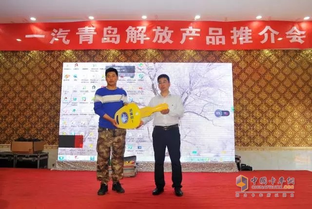 推介會現場,遵化解放公司業務經理李忠詳細介紹了解放悍威整車的產品優勢,并一一解答了用戶所提出的發動機油耗、動力性、使用保養及售后服務方面的問題,讓用戶對青島解放產品有了更深入的了解。