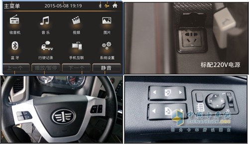 除此之外,車上標(biāo)配其他品牌所不具有的220V電源,可以實(shí)現(xiàn)常用電器的使用,將廚房、書房搬上車,方便司機(jī)車上生活。電動(dòng)后視鏡集成加熱除霜功能,操作更方便,駕駛新輕松。匹配多功能方向盤,集成巡航快捷鍵和娛樂快捷鍵,智能化、人性化配置,為用戶打造移動(dòng)之家。