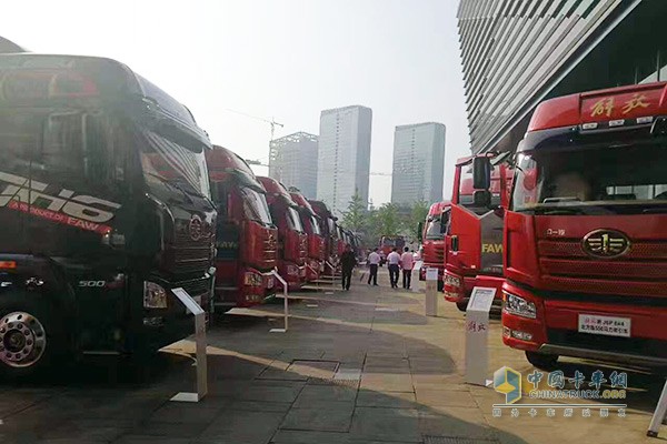 本次年中會共計展出展車24臺,來自長春、青島、柳特三大卡車生產基地,覆蓋牽引、自卸、載貨、專用全品系,包括綠通版、質惠版、超值版、天V、悍V、輕量化載貨等明星產品。