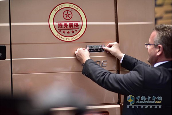 奔馳動力總成全球銷售負(fù)責(zé)人Alexander Klinkner 先生更是在會后親自代表奔馳為大運(yùn)主持授牌儀式!奔馳親自參與手牌,代表了對大運(yùn)的支持與信任,這份信任也來源于大運(yùn)產(chǎn)品本身的專業(yè)水準(zhǔn)。