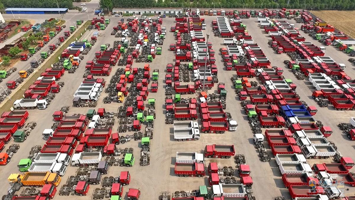 數百輛重卡放在一起場面十分壯觀