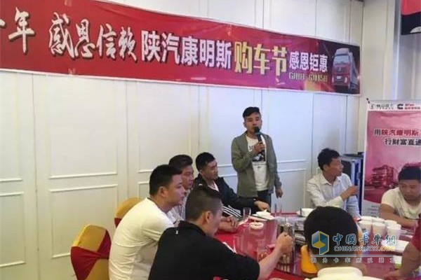 會前播放康明斯的產品宣傳視頻引起會場參會人員的強烈反響,安徽吉奧銷售經理馬錦代表陜汽重卡對本次活動做了簡單的致辭發言。