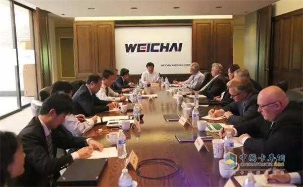 濰柴董事長譚旭光在芝加哥濰柴北美公司聽取PSI公司管理層戰略及相關業務的工作匯報。譚旭光董事長肯定了雙方團隊的成績,并對今后的工作提出了新的要求。他指出,雙方要密切合作,打造濰柴動力在北美的對外平臺,實現1+1>2的協同效應。
