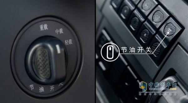 標(biāo)配節(jié)油開關(guān):分輕載、中就、重載,分別輸出率為70%、80%、100%。使車輛的行駛油耗達(dá)到最佳節(jié)油狀態(tài);