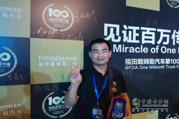 中國首臺歐曼EST-A用戶,徐州首臺歐曼GTL用戶。這次參加福田戴姆勒百萬臺下線活動他的標簽百萬英雄最忠誠用戶,可謂實至名歸。