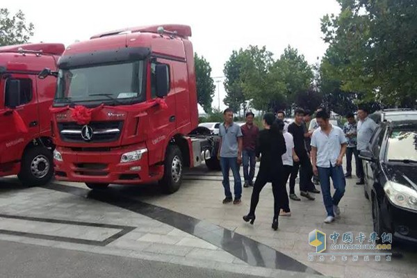 北奔重汽山東分公司營銷人員向與會人員介紹了北奔重汽的發展歷程和產品優勢,并且針對V3ET牽引車、V3MT牽引車兩款產品做了詳細的講解,讓大家對北奔重汽有了更為詳盡的認知,對北奔重卡有了更深的了解。