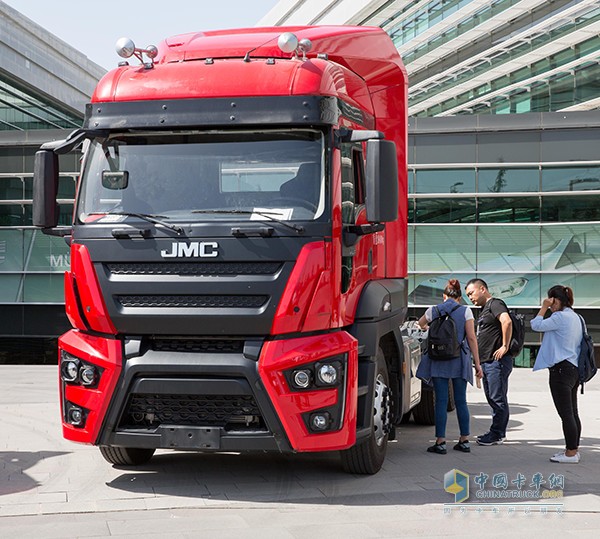 即使單純從外表來看,也不難看出它們之間的深厚淵源。 跨越了空間的距離,來到了在歐亞大陸的交匯處,在它們最初誕生的地方,面對面站在了一起。這輛江鈴威龍重卡的紅色,是我們最為熟悉的中國紅,在明媚的地中海陽光下顯得格外耀眼。