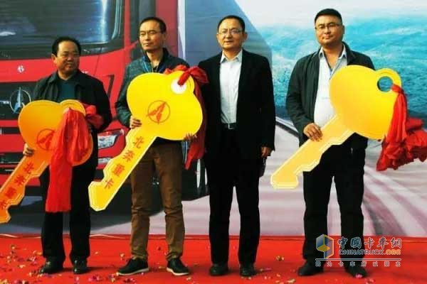 本次活動正是在這樣的背景下舉辦。首先舉行交車儀式,汪寶營將代表財富的金鑰匙交付滿世聯合物流副總經理閆喜換。