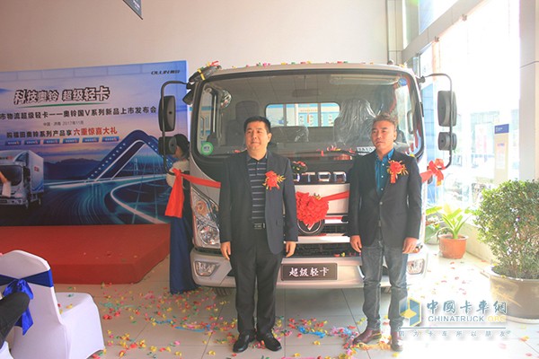 福田輕型商用車事業本部奧鈴濟南市場部經理林夕軍與濟南富邦汽車銷售有限公司總經理徐延岐為奧鈴CTS超級輕卡揭幕