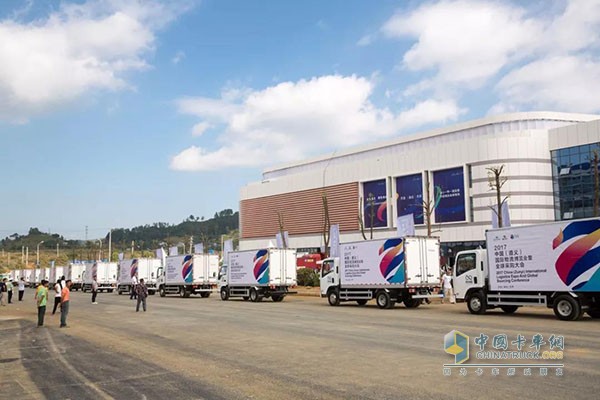 2017中國(遵義)國際物流博覽會暨全球采購大會“黔貨出山風行天下”發車儀式環節,由慶鈴五十鈴為主力陣容的71臺卡車滿載貴州大米、食用油、高山黃牛、鮮辣椒以及各類果蔬等總價值約550萬元的農特產品緩緩出發,開往上海、廣州、成都、重慶等國內其他城市。由于可靠耐久的慶鈴產品非常適應云貴高原的地理特性和物流環境,自然也更能承擔“黔貨出山,風行天下”的使命。