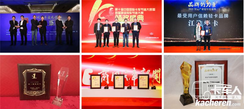 江淮輕卡幾十年不斷創新,奉行品質為先的態度和實踐,贏得了媒體及行業專家的肯定。在去年年末“誰是第一”商用車評選盛會上,江淮帥鈴全能卡車斬獲“年度第一智能輕卡”,江淮康鈴H5榮獲“第一賺錢輕卡”;在中國道路運輸網主辦的“品牌的力量”——2018貨運產業鏈年度盛典中,江淮輕卡摘得“最受用戶信賴輕卡品牌”