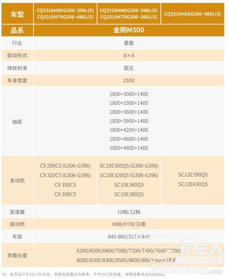 紅巖金剛M500 8X4重載版自卸車參數(shù)
