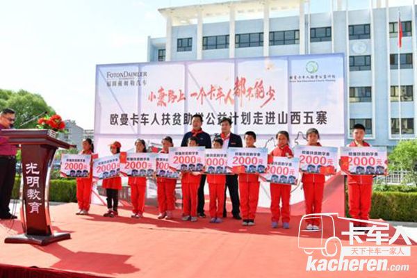 2018年初,福田戴姆勒汽車以“小康路上 一個卡車人都不能少”再度持續推進“歐曼卡車人助學公益計劃”,不僅持續走進“重點物流村”開展精準幫扶,更匯聚物流協會、大型物流企業及核心零部件供應商代表等社會力量,聚焦物流行業內貧困卡車司機家庭。