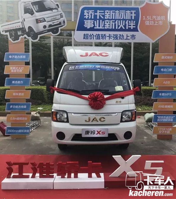江淮康鈴針對(duì)于同城配送及城郊物流,圍繞著上述用戶需求,打造了江淮轎卡X5 1.5L汽油版??梢哉f,關(guān)于小卡你想要的,江淮轎卡X5 1.5L汽油版都能滿足你。