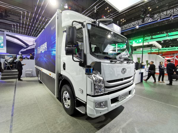上汽躍進帶來的另一款重磅明星產品EC500i智能城市物流車,是基于躍進新能源輕卡打造的新一代智能網聯城市道路運輸解決方案的首款產品,集合了上汽集團優勢資源和核心技術,匹配了多傳感器融合的感知決策系統、融合智駕技術的線控底盤和三電系統,依托云OS系統和大數據算法,讓綠色新能源車搭載了智慧的大腦。