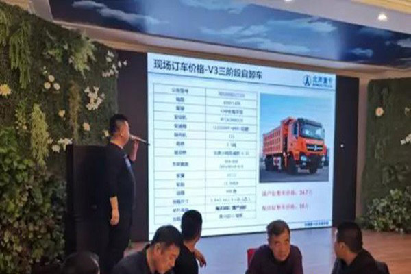 任閆富強講解北奔重卡新產品及購車優惠政策