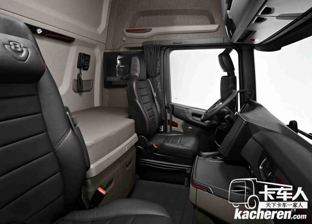 在安全方面,除了標配液力緩速器、ACC自適應巡航、ABS防抱死制動系統、ASR防滑系統,ESC電子穩定等系統外,該車型還配備側簾式安全氣囊(SCANIA獨創)以及方向盤安全氣囊,帶轉向燈的LED頭燈和夜間落鎖裝置,以避免在夜間休息時被人侵入駕駛室。