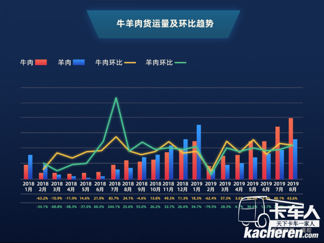 8月牛肉貨運(yùn)量同比漲3.6倍,羊肉漲2.4倍
