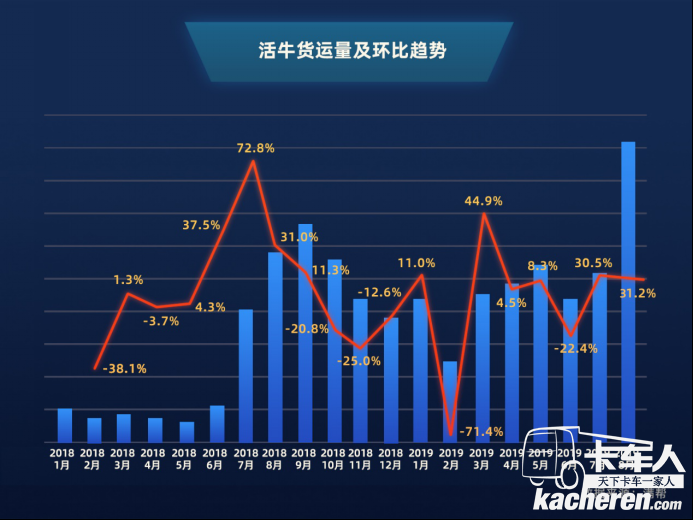 活?;钛蜇涍\(yùn)量增速不及牛羊肉,但也呈現(xiàn)明顯的漲幅。特別是豬肉價(jià)格沖高的8月,活羊運(yùn)輸環(huán)比上漲65.2%,同比上漲47.2%,活牛運(yùn)輸環(huán)比上漲31.2%,同比上漲53.9%。