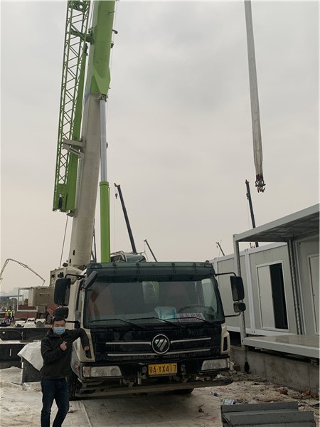 “起吊——平移——找到坐標——緩緩放下……”這樣重復的動作,一次接一次,而且不能有任何閃失,“看好外面的距離,把好手中的操縱桿,必須一絲不茍。”李浪說,自己是個“老司機”了。2010年,他學會了開吊車,在父母支持下開了自己的吊車公司,目前公司有七臺福田雷薩吊車,三臺55噸的,四臺25噸的。“雷薩吊車質量及各方面性能很不錯,特別是在這樣的關鍵時刻一點問題也沒有發生過。”他說,真要出問題,就要耽誤大事了。