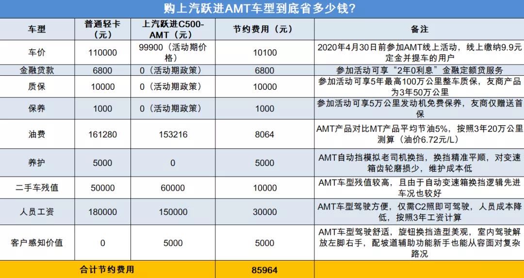 上汽躍進AMT車型到底省多少?
