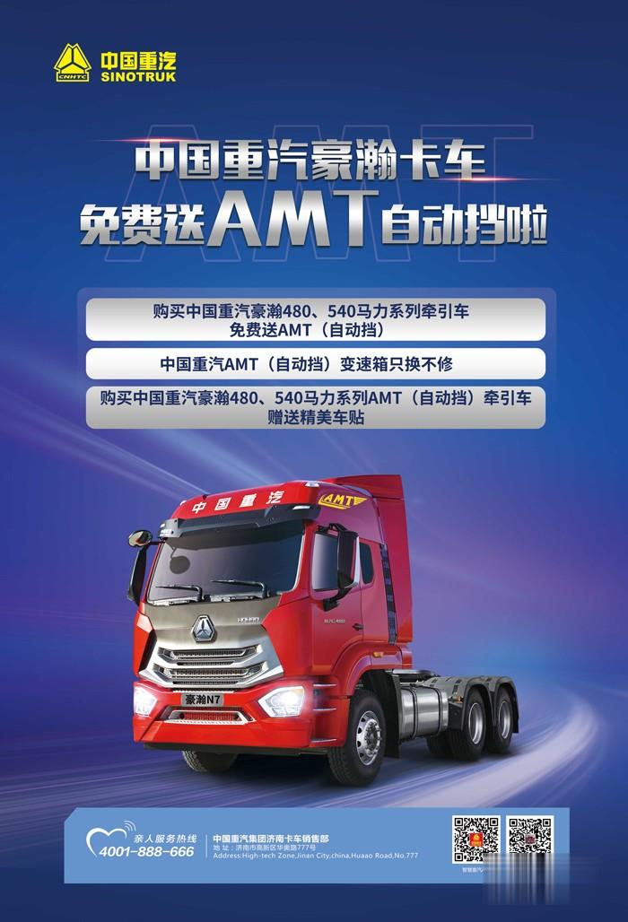 據中國卡車網了解,即日起,凡是購買中國重汽豪沃、豪瀚 480馬力、540馬力系列牽引車的用戶,都可以享受免費升級送AMT變速箱的活動,同時還享受AMT的相關服務。