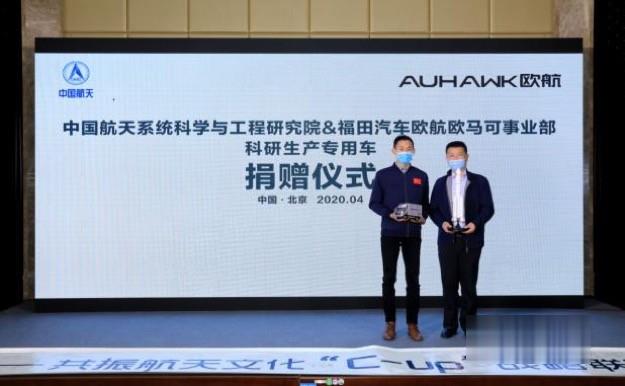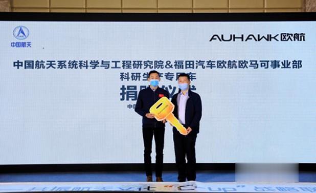 福田汽車集團副總裁、歐航歐馬可事業(yè)部總裁顧德華先生與中國航天系統(tǒng)科學(xué)與工程研究院科研計劃部部長高玉峰先生代表雙方完成歐航超級卡車捐贈儀式