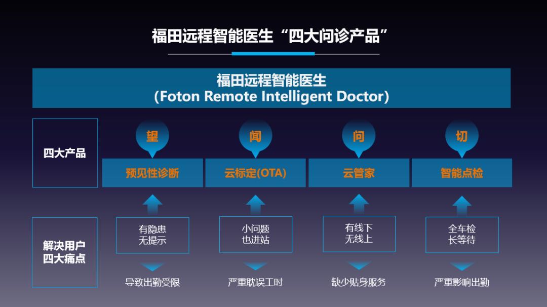 其次,歐航基于福田汽車集團的預(yù)見性服務(wù)戰(zhàn)略規(guī)劃,依托智科車聯(lián)網(wǎng)、專家診斷系統(tǒng)、福田e家等平臺優(yōu)勢,通過預(yù)見性診斷、云標(biāo)定(OTA)服務(wù)、云管家、智能點檢等服務(wù)產(chǎn)品,為航天生產(chǎn)運輸打造最貼心的商用車遠(yuǎn)程智能醫(yī)生,進(jìn)一步提升航天物流運輸?shù)某銮诼屎瓦\輸效率。