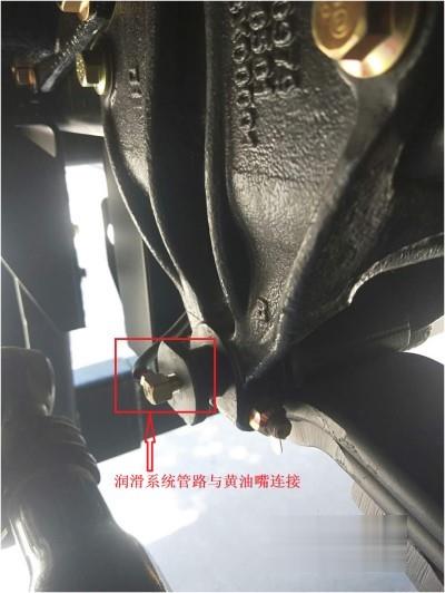 潤滑系統(tǒng)管路與板簧銷軸處的黃油嘴連接