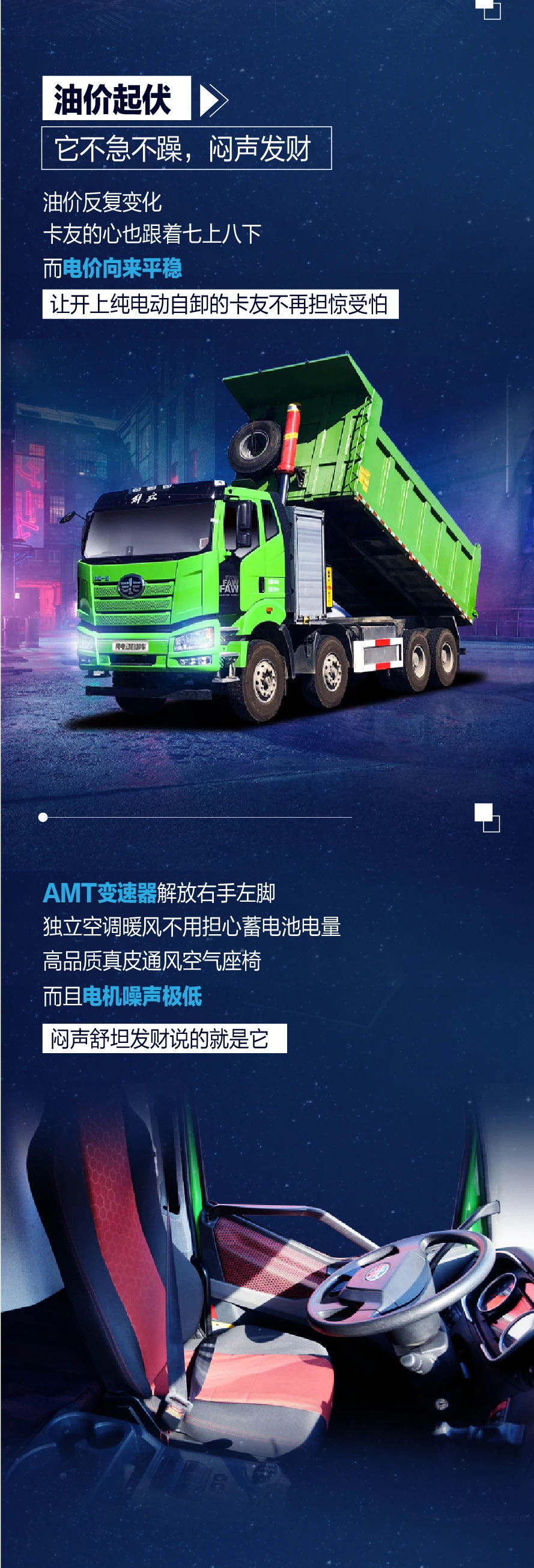 國三漸漸淘汰,國六步步緊逼,解放J6P 8X4純電動自卸車,沒有排放壓力,不受限行規(guī)定,高效運(yùn)營,讓卡友悶聲發(fā)財(cái)。