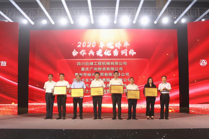 揭牌儀式上,雙方還進(jìn)行了聯(lián)合交車和頒獎(jiǎng)。一汽解放汽車銷售有限公司專用車部部長(zhǎng)李鐵軍、凌宇汽車副總經(jīng)理兼營(yíng)銷公司總經(jīng)理胡柏林共同把象征著產(chǎn)品的金鑰匙和車模交付到第1717輛車用戶手中,寓意三方協(xié)作促共贏,共譜華章再起航。隨后,凌宇汽車總經(jīng)理劉寶山、一汽解放汽車銷售有限公司副總經(jīng)理霍明共同為2020年攪拌車合作共建優(yōu)秀網(wǎng)絡(luò)經(jīng)銷商頒獎(jiǎng)。