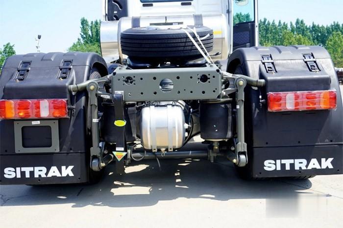 這款汕德卡G7牽引車(chē)采用MT13.44-60發(fā)動(dòng)機(jī);HW25712XSTCL鋁殼變速箱,帶換擋氣助力和福伊特液力緩速器;全車(chē)盤(pán)式制動(dòng)器;MCY12BES雙后橋速比3.7;八氣囊空氣懸架;約斯特50鞍座;后置1000L+側(cè)置450L雙氣瓶;獨(dú)立暖風(fēng);駐車(chē)空調(diào)。