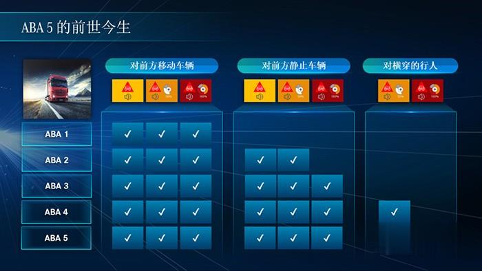 奔馳卡車從2006年開始推出第一代主動制動輔助系統(tǒng),從只能識別前方移動車輛發(fā)展到可以識別靜止車輛并采取緊急制動。從ABA 4開始可以識別橫穿馬路的行人,并采取部分制動。