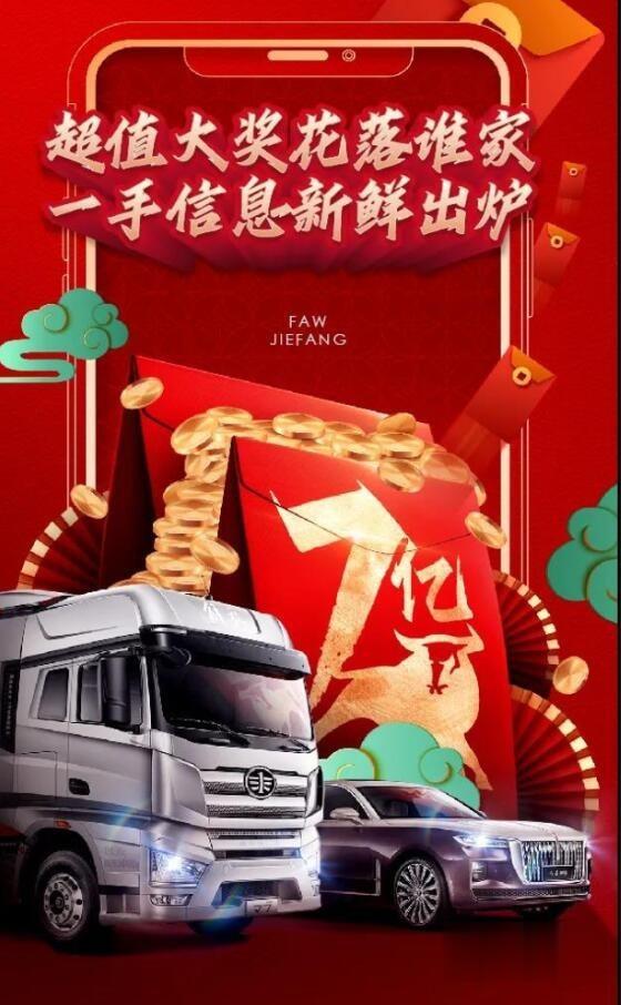 為喜迎新春,一汽解放自年初便推出了多輪鉅惠活動,自2021年元旦推出的“新春十重禮”讓眾多卡友在年前就收獲了一波購車驚喜。除夕至初六,一汽解放更是豪送“7億抽獎禮”,連續七天在線上派送購車紅包,攜7億豪禮向全國卡友們送出新春福利,燃爆這個春天!從2021年2月11日至2月17日活動截止,一汽解放官微7億豪禮抽獎平臺匯集了超12.4萬人次登錄,預購卡車數量突破1.7萬輛。