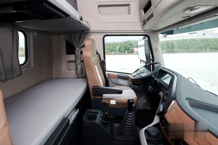 主駕駛椅為多功能零重力氣囊減震座椅,包裹性進行了優化,帶通風加熱功能駕乘更舒適。還帶有隱藏式的臥鋪爬梯,儀表臺寫字板、臥鋪小桌板、抽屜式雜物盒、多重儲物空間,為行車生活提供更多便利。