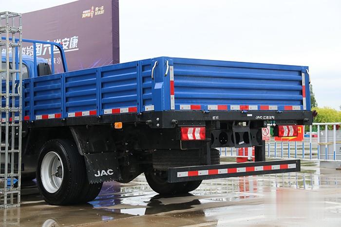 駿鈴綠霸王最大能做到5730(mm)x2450(mm)x550(mm)極限尺寸大容積貨廂,最大擁有24m³容積,能夠充分滿足城配以及城際配貨運營工況下的使用需求。兩側配有防護裝置,避免車輛、行人卷入卡車底下造成二次傷害。