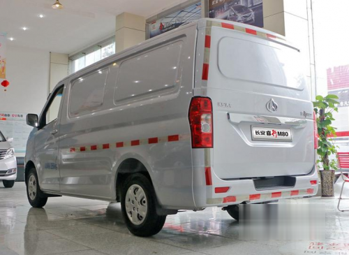 長安睿行M80整車長4.805米,寬*1.715米,軸距3.05米,緊湊型車身設計,操控性、通過性均優(yōu)于傳統(tǒng)輕客。調(diào)整為2座廂貨后,內(nèi)部尺寸達到2790(隔斷后測量)*1550*1350/1550mm,平頂載貨空間6m³,高頂載貨空間6.8m³,使用空間絕對滿足用戶的用車需求。同時采用對開式、背掀式兩種后背門選擇,對開門開度可達180°,貨物裝卸更方便。