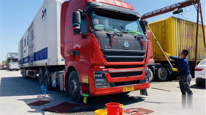 初夏的濟南算不上炎熱,伴隨著陣陣微風,甚至讓人感覺到一絲涼爽。結束了一趟長達3800多公里的往返運輸,眼前這臺豪沃TH7的兩位駕駛員付兵成和劉勇各司其職,一人整理車輛,另一人則安排運費結算及下趟運輸事宜。接下來,他們將有24小時的在濟時間,貨物一旦裝好,兩人將馬不停蹄地趕往廈門。讓我們一起走近他們的運輸生活。