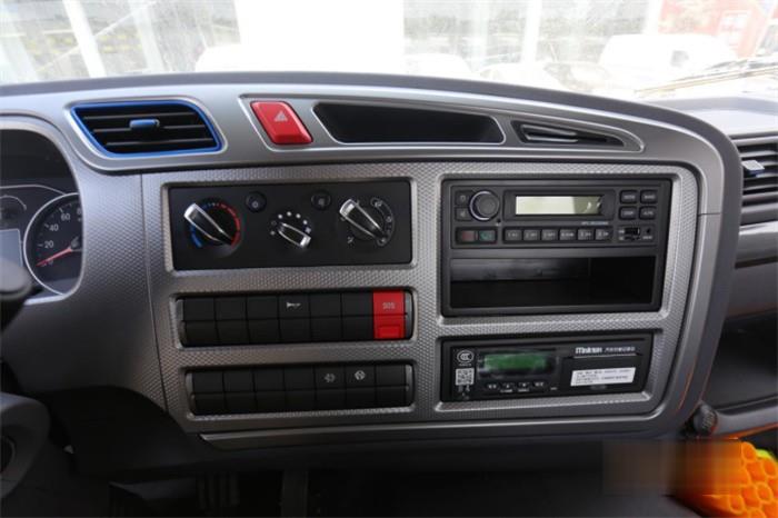 中控操作區(qū)域偏向于主駕一側(cè),增加在行車中的使用便利性。中控臺四周覆蓋一圈銀色面板,視覺上更加豐富。配置方面,中控左側(cè)為空調(diào)、DPF開關(guān),右側(cè)為收音機(jī)、行車記錄儀。當(dāng)然如果是對娛樂方面有更多需求的話,可以選裝多媒體觸控大屏,實(shí)現(xiàn)更多功能。