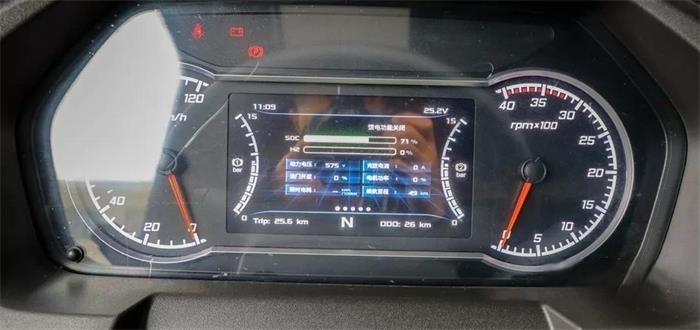 在整車儀表中控方面,儀表采用指針+液晶儀表式組合結(jié)構(gòu),除了常規(guī)的轉(zhuǎn)速、車速信息之外,車輛的氫燃料余量、氫燃料壓力、氫耗、電池組溫度電壓都可以通過這個儀表來完成讀取。