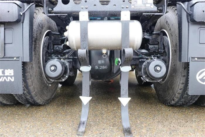 上汽紅巖杰獅H6純電動重卡在車架側面安置了高功率電動打氣泵