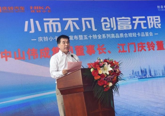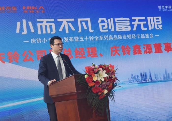 慶鈴股份副總經理、慶鈴鑫源董事長陳代勁蒞臨現場,為本次江門慶鈴鈴咖小卡上市活動獻上祝福,他表示:“慶鈴鈴咖小卡滿足用戶多場景物流需求,順應藍牌新政,針對性研發推出的高品質城配輕卡,它不僅與五十鈴共線生產,還符合當下新藍派輕卡法規的各項政策,合規出行無憂,為用戶提供一款超高性價比輕卡。“小而不凡,創富無限”,慶鈴小卡個子小,能量大,更劃算,勢必在未來的市場上,再鈴巔峰!接下來,我們還將繼續對旗下產品升級,持續為消費者創造舒適、安全、高效的出行體驗,在高品質商用車的征程上,不斷前行。”